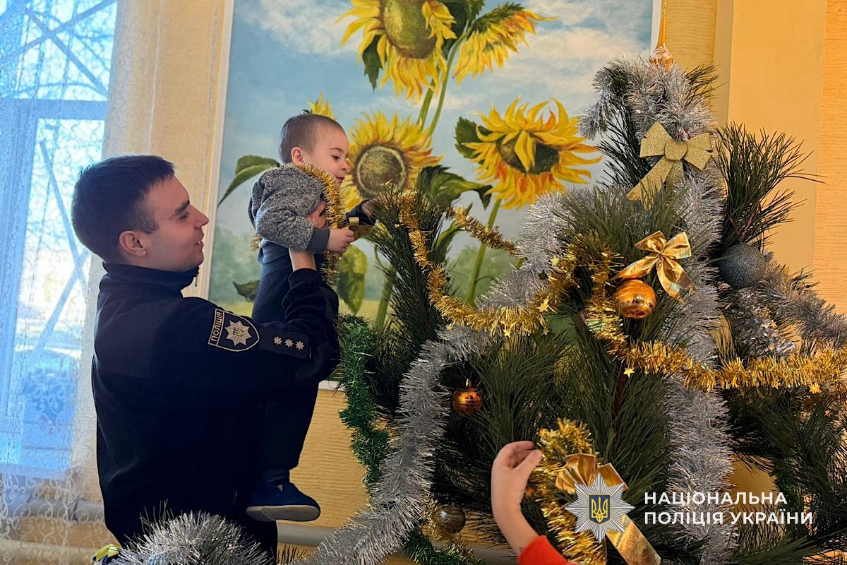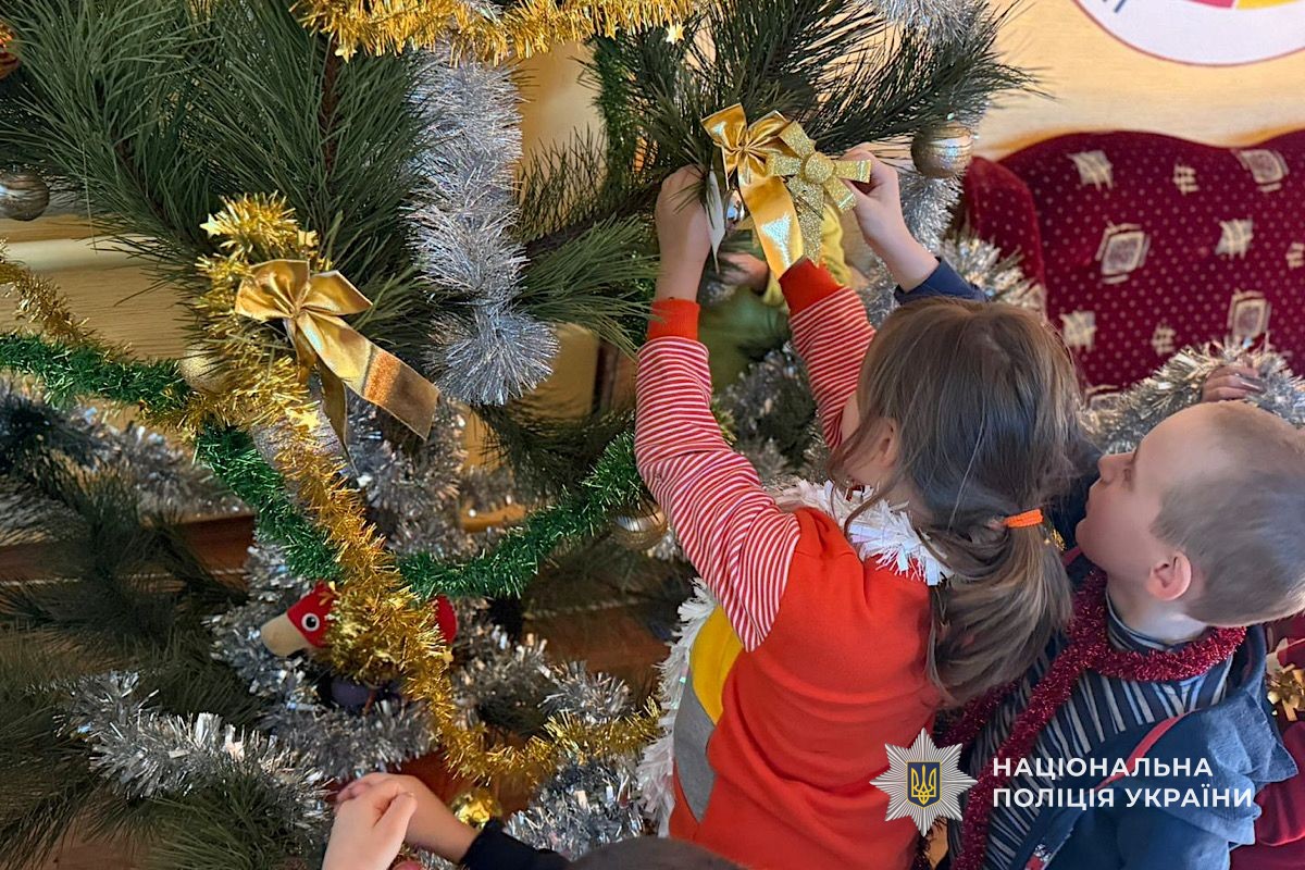 Правоохоронці привезли дітям новорічну ялинку, яку разом встановили та прикрасили яскравими іграшками, бантиками й гірляндами, створивши справжню казкову атмосферу. Діти з радістю долучилися до святкової підготовки: допомагали прикрашати ялинку, розповідали новорічні віршики та ділилися своїми мріями на прийдешній рік.