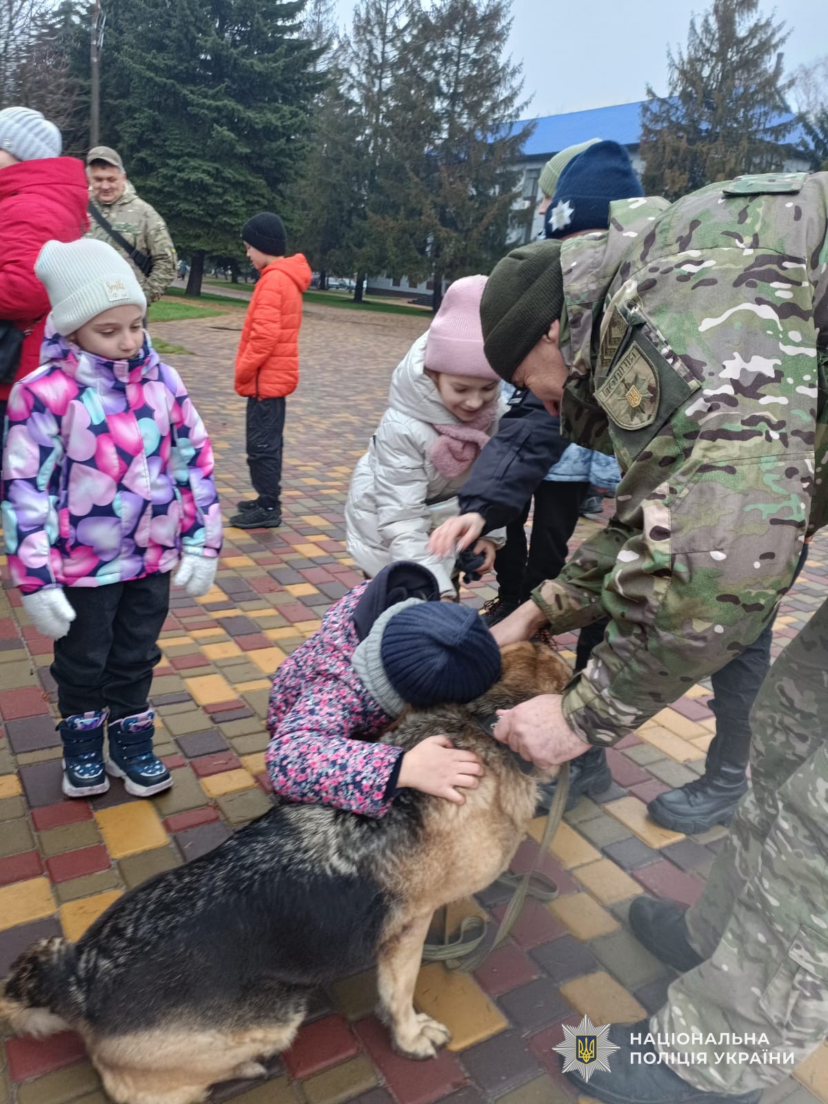 Після демонстрації своїх службових навичок, поліцейські собаки залюбки поспілкувалися з присутніми й сфотографувалися з ними.