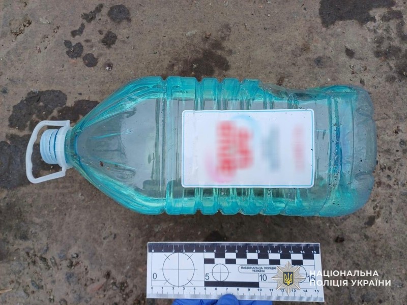 З місця події криміналісти вилучили пластикову ємність з паливно-мастильною речовиною.