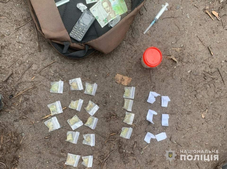 Загалом у наркозбувача правоохоронці вилучили понад 30 сліп-пакетиків, паперових згортків та пластикових ємкостей з наркотиками, мобільний телефон та гроші – отриманні від незаконної діяльності.