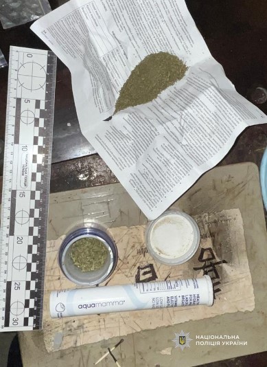 За місцем мешкання підозрюваного правоохоронці вилучили сліп-пакети з амфетаміном, паперовий згорток з канабісом, електронні ваги та саморобний пристрій для куріння наркотичної речовини.