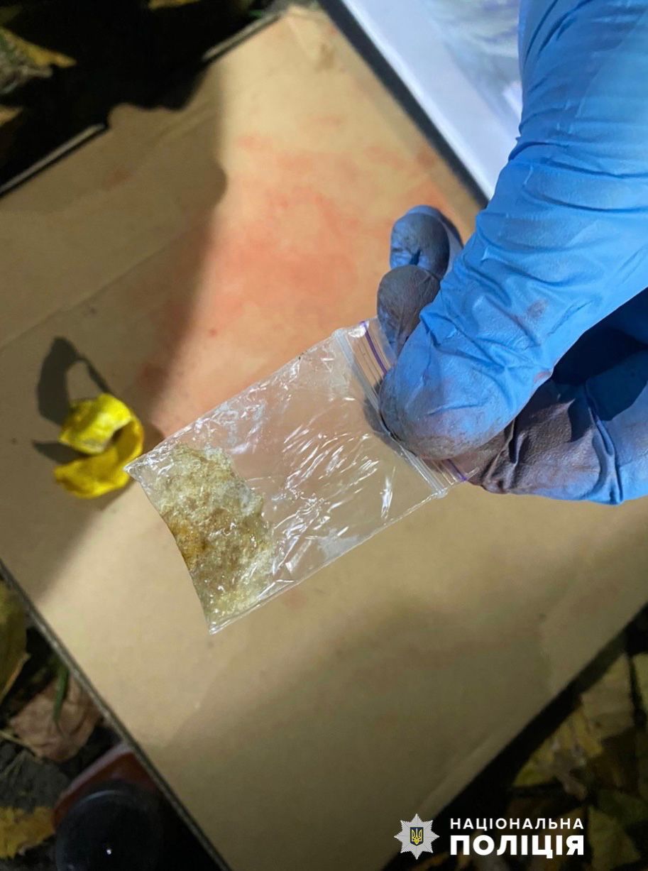 24 жовтня працівники кримінальної поліції Дніпровського районного управління поліції за підозрою у збуті наркотиків зупинили для перевірки 23-річного чоловіка, який намагався закопати у землі свій "товар".