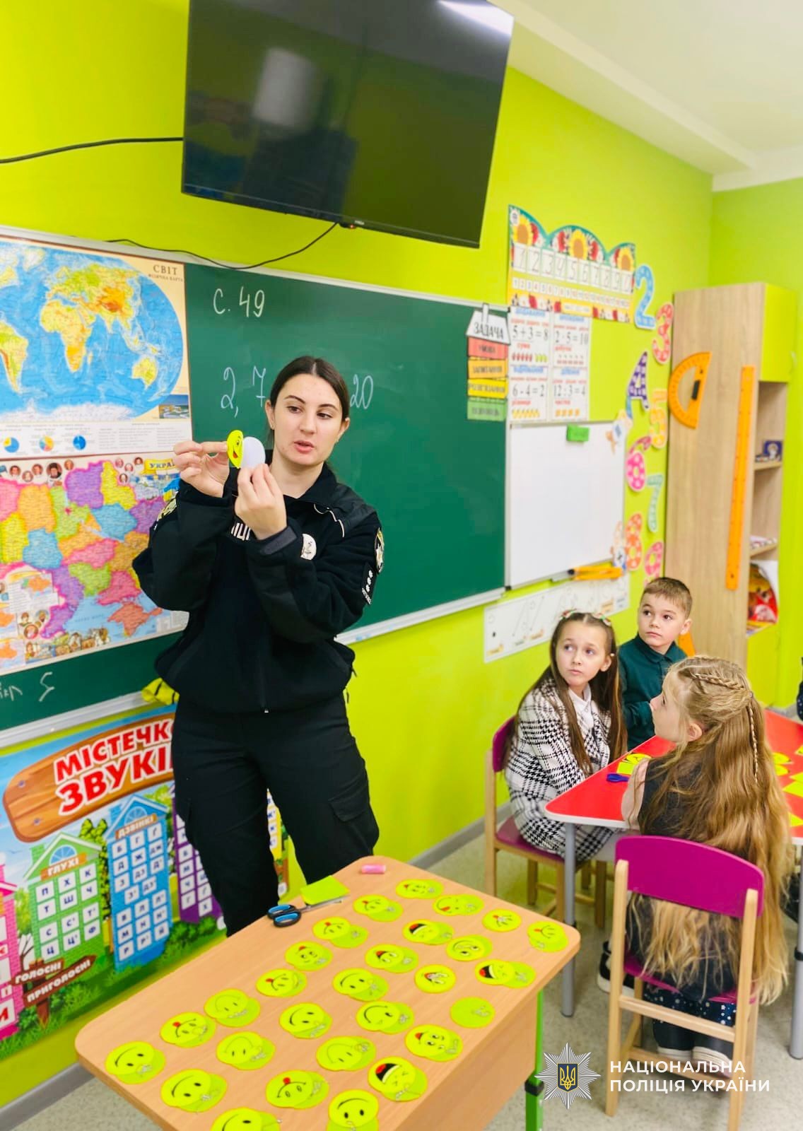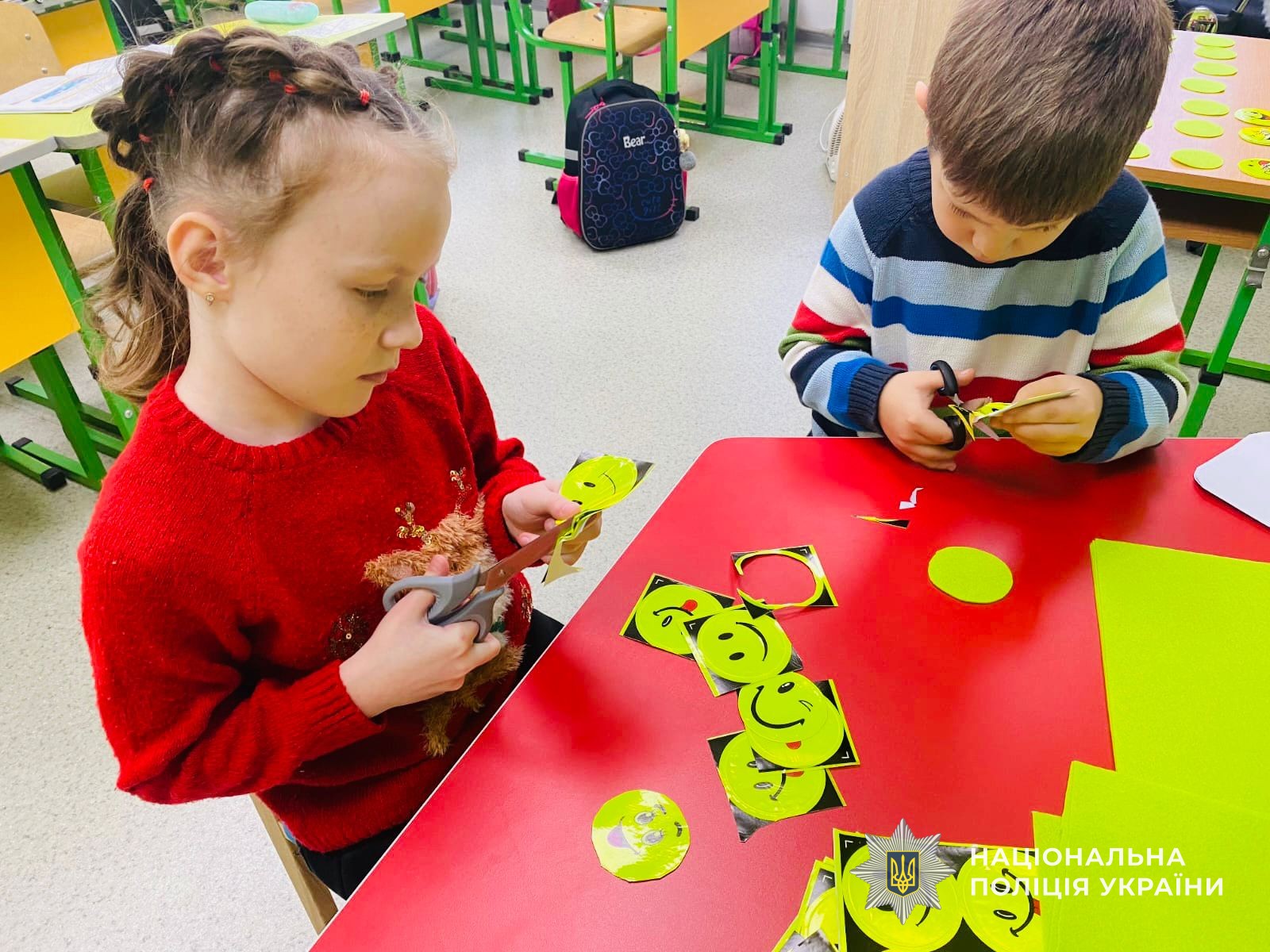 Збережи життя - засвітись у темряві: у Кам’янському поліцейська служби освітньої безпеки виготовила зі школярами флікери