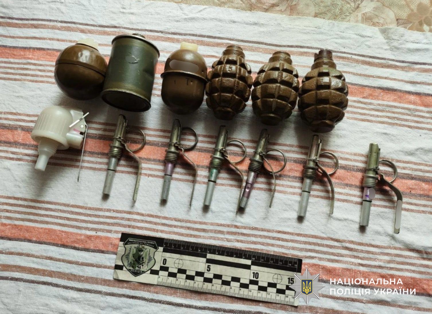 За місцем мешкання чоловік зберігав 7 різних запалів, 3 гранати «Ф-1», гранату «РГД-5», гранату «РГ-42» та гранату «РГН».