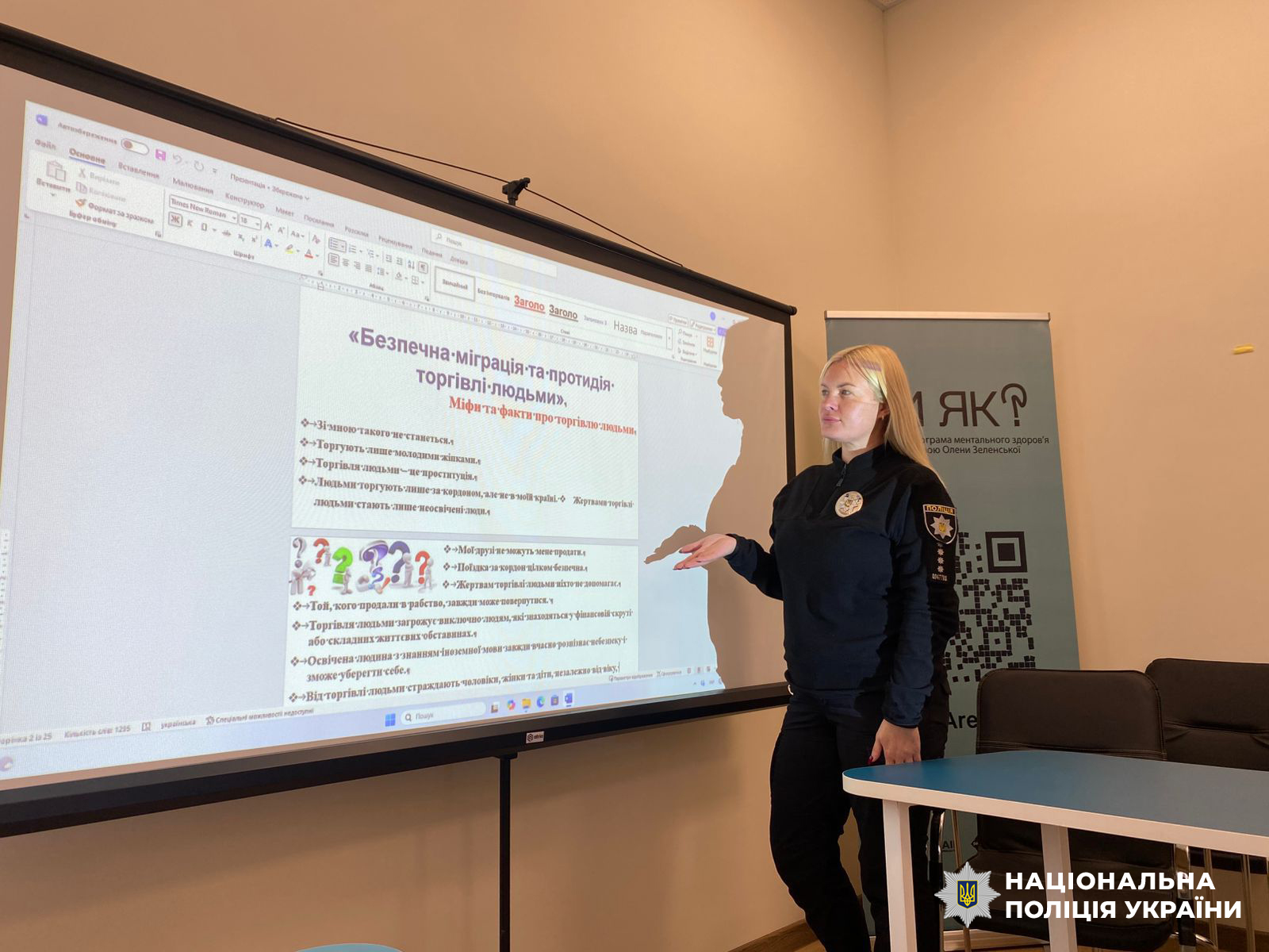 Захід пройшов у форматі відкритого діалогу: фахівці центру, внутрішньо переміщені особи та інші учасники мали змогу поставити питання та отримати вичерпні відповіді від спеціалістів. Поліцейські наголосили: лише разом — завдяки поінформованості, пильності та підтримці одне одного — ми можемо ефективно протидіяти цьому небезпечному явищу.