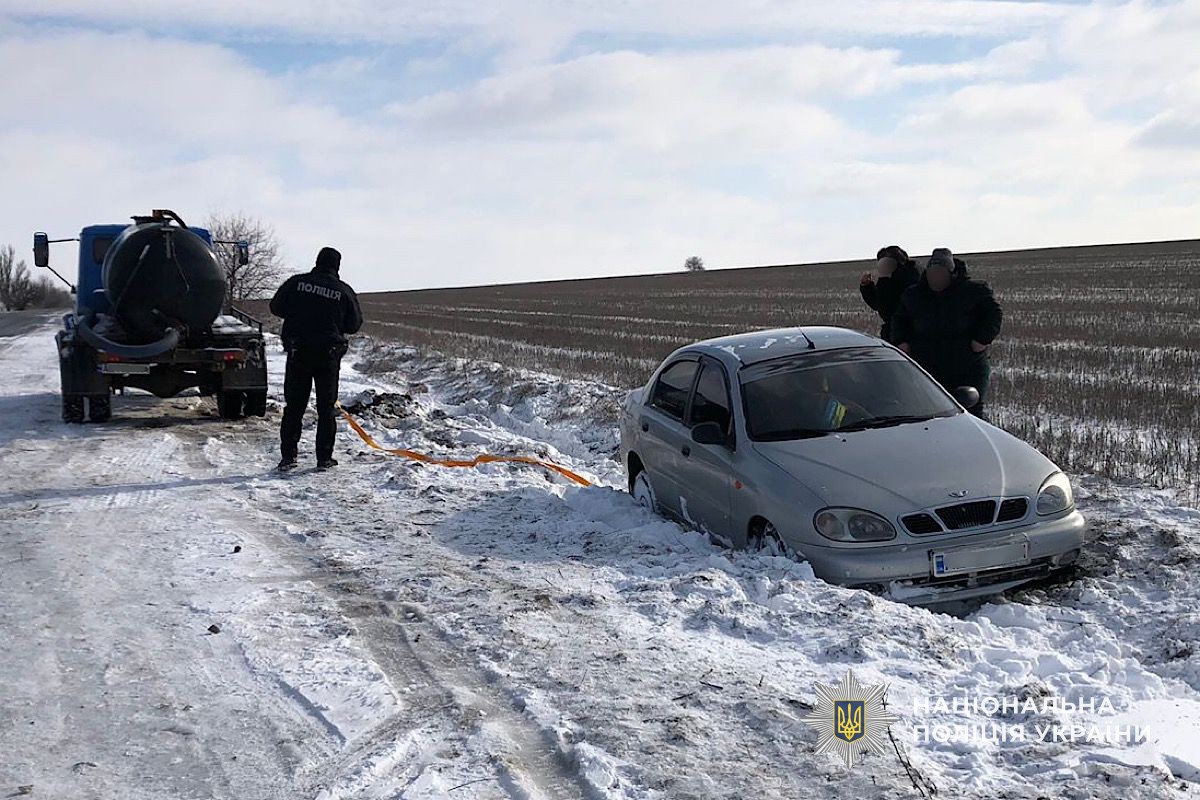 Зимова пастка на дорозі: поліцейські Криворізького району допомогли водієві продовжити рух